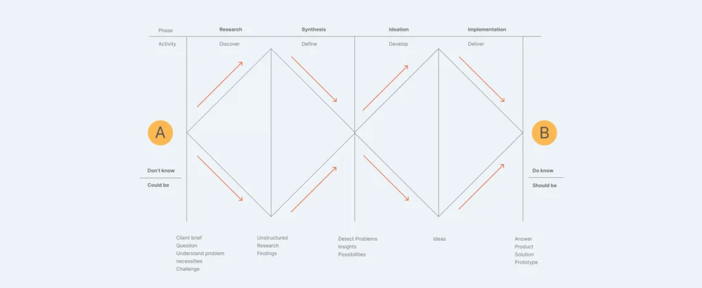 To ensure a user-centered design, we followed the Double Diamond Framework—a methodology that emphasizes problem discovery before jumping into solutions.